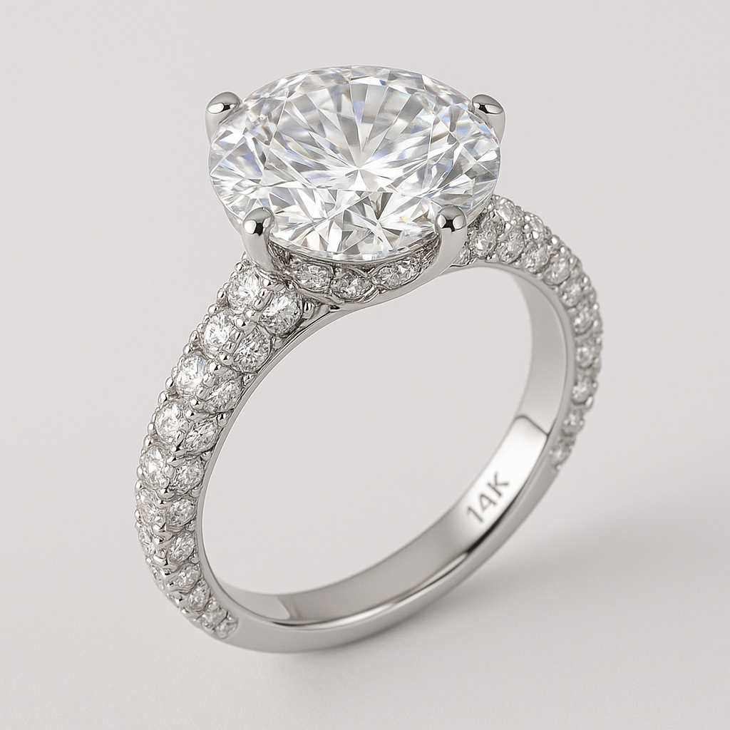 5 ct round lab diamond with 14k white gold solitaire band Engagement Ring with little diamonds on the sides